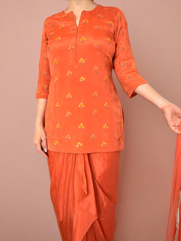 KANAYA Orange Embroidered Dhoti Skirt Suit - S
