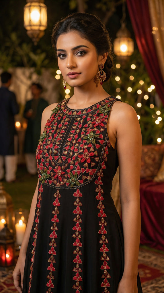 KANAYA Black Embroidered Anarkali Dress - S