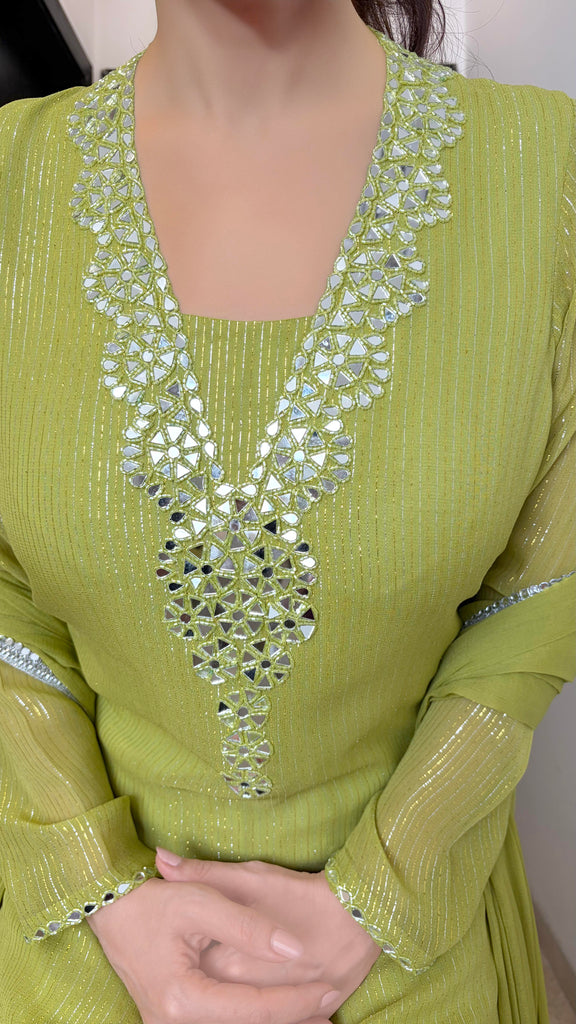 KANAYA Lime Green Mirror Embroidered Farshi Suit - XL