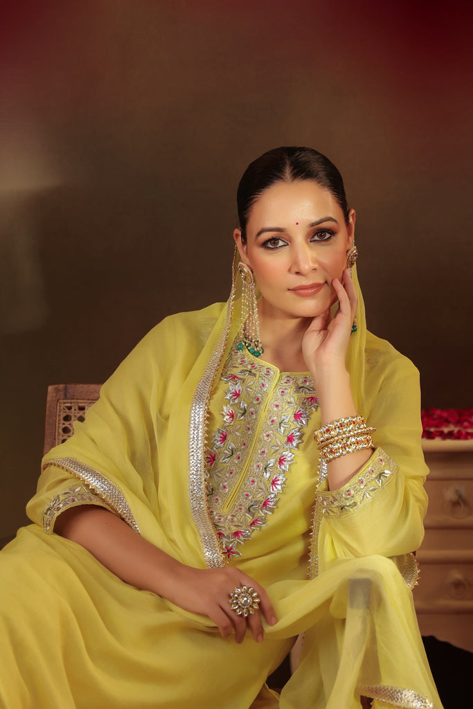 Yellow Top with Sharara Set - L